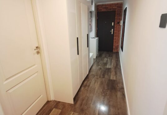 * zabudowy stałe w przedpokoju oraz salonie zwiększające funkcjonalność przestrzeni,