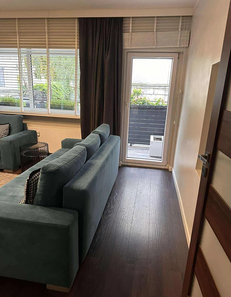 Przestronny, jasny pokój dzienny z wyjściem na balkon – idealny do relaksu lub spędzania czasu z rodziną.