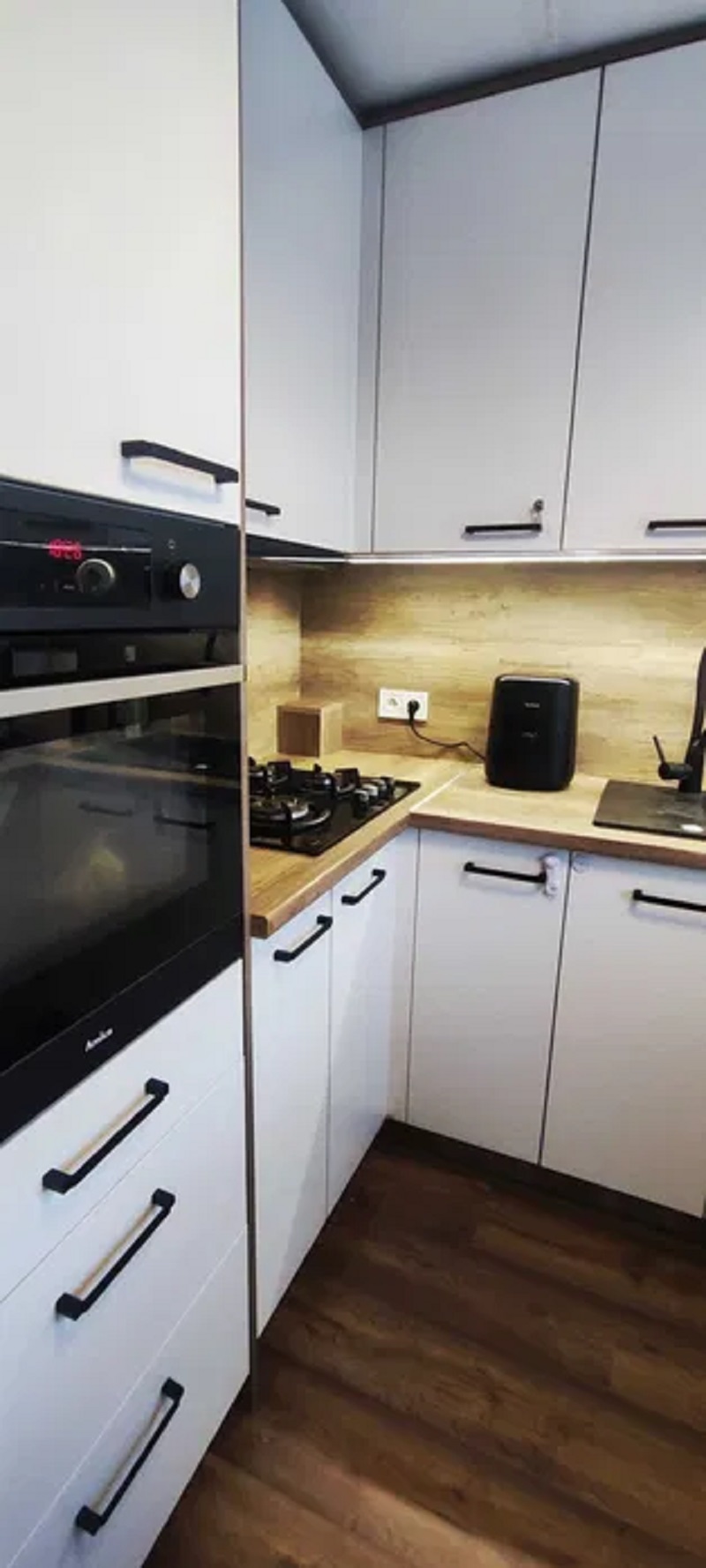 * kuchnia w zabudowie z kompletem sprzętów AGD (piekarnik, płyta gazowa, okap, zmywarka),