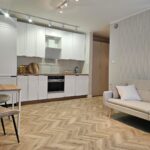 Kuchnia została wyposażona w nowe urządzenia AGD: okap, płytę indukcyjną oraz piekarnik, wszystkie objęte gwarancją producenta.