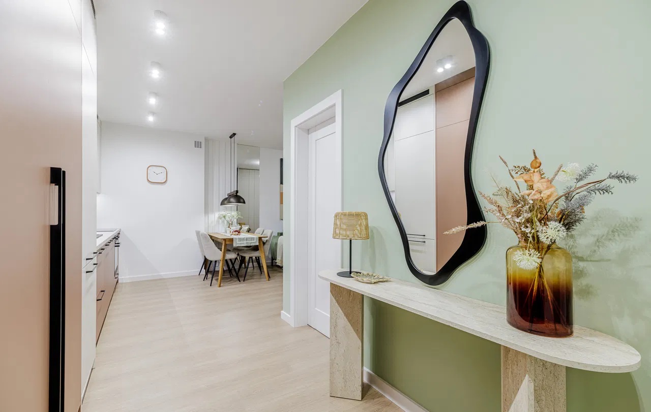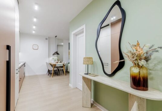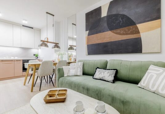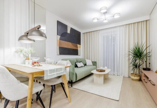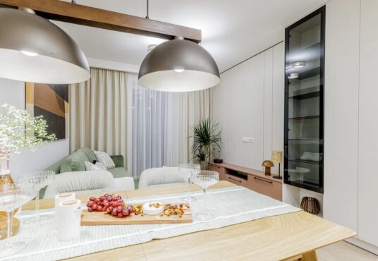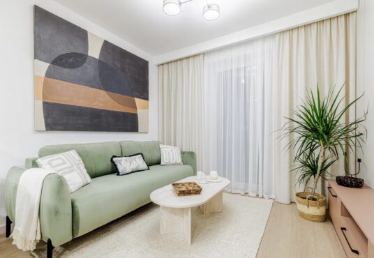 Mieszkanie zostało wykończone pod klucz, z dbałością o detale — wszystkie meble i sprzęty AGD są nowe i nieużywane.