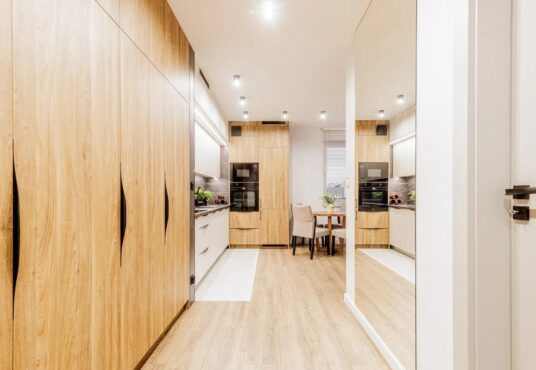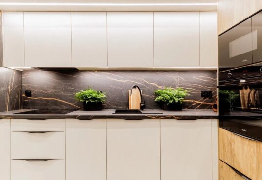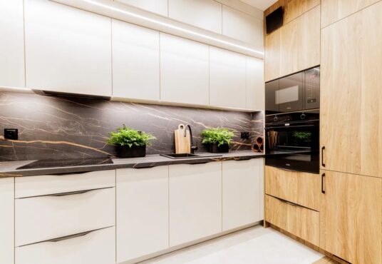 – zabudowa kuchenna z nowym sprzętem AGD: płyta indukcyjna, piekarnik, mikrofalówka,