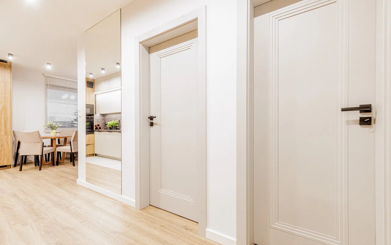 – trzy pojemne szafy na wymiar (w korytarzu i sypialni),