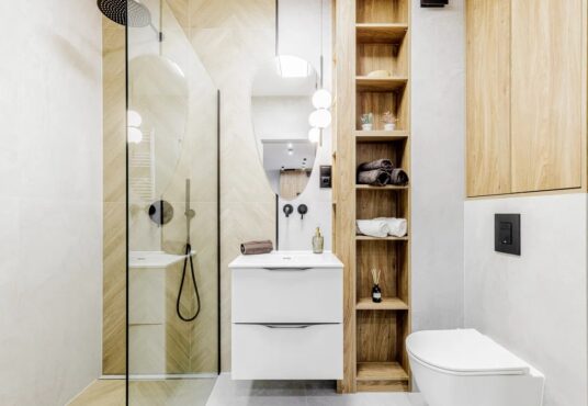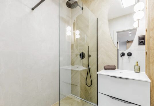 – nowoczesna łazienka z licznymi miejscami do przechowywania.