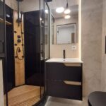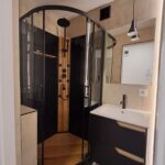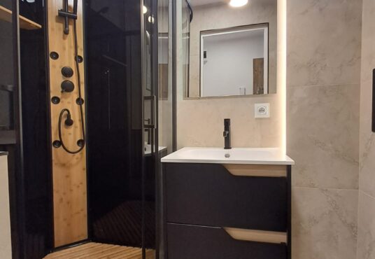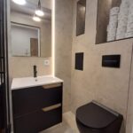 * Łazienka: kabina prysznicowa, szafka z umywalką, lustro, system Geberit,