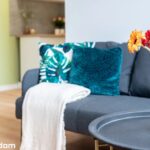 • jasny pokój dzienny z aneksem kuchennym, idealny do codziennego wypoczynku,